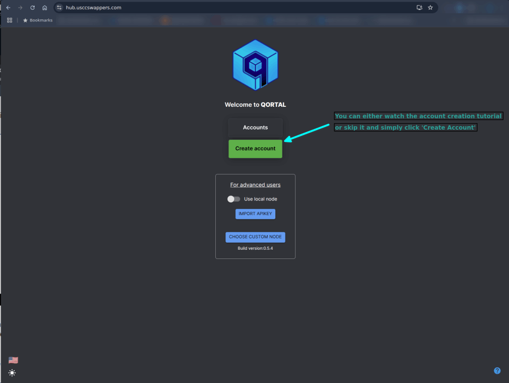 Access the Hosted-Access Qortal Hub provided by USCC-Swappers, to give you access to Qortal Hub. From there, you can create your first Qortal Account!