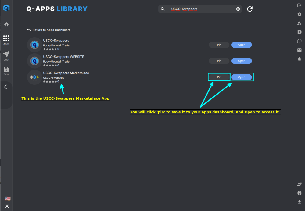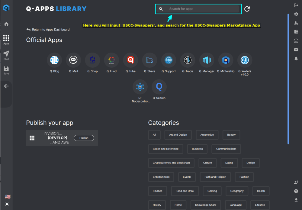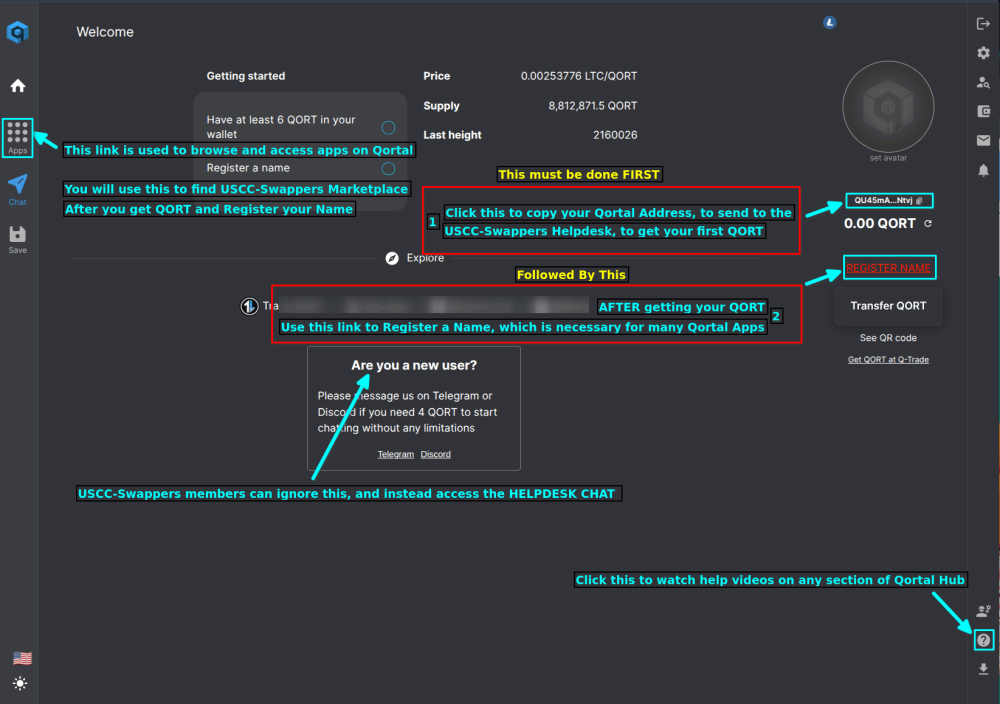 The images below will walk you through the Qortal Account Creation and initial access of the USCC-Swappers Marketplace App.